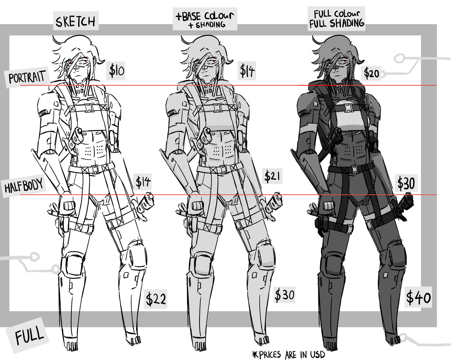 Portrait $20 USDHalfbody $30 USDFull: $40 USD